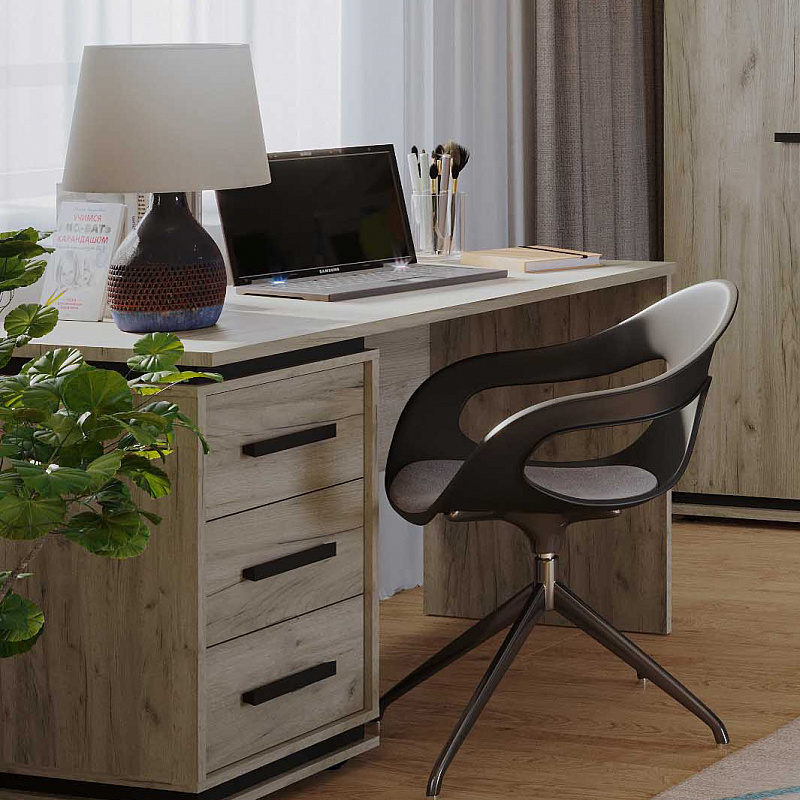 За счет просторной рабочей поверхности OSLO (ОСЛО) 84 Cтол письменный одинаково удобен как для левши, так и для правши. Благодаря возможности левосторонней и правосторонней сборки три выдвижных ящика на шариковых направляющих можно установить с любой удобной для вас стороны. Столешница 22 мм и ударопрочная кромка в 2 мм повысят срок службы стола. Под столешницей - небольшая ниша со стороны ящиков. В нишу может поместиться планшет или журналы.