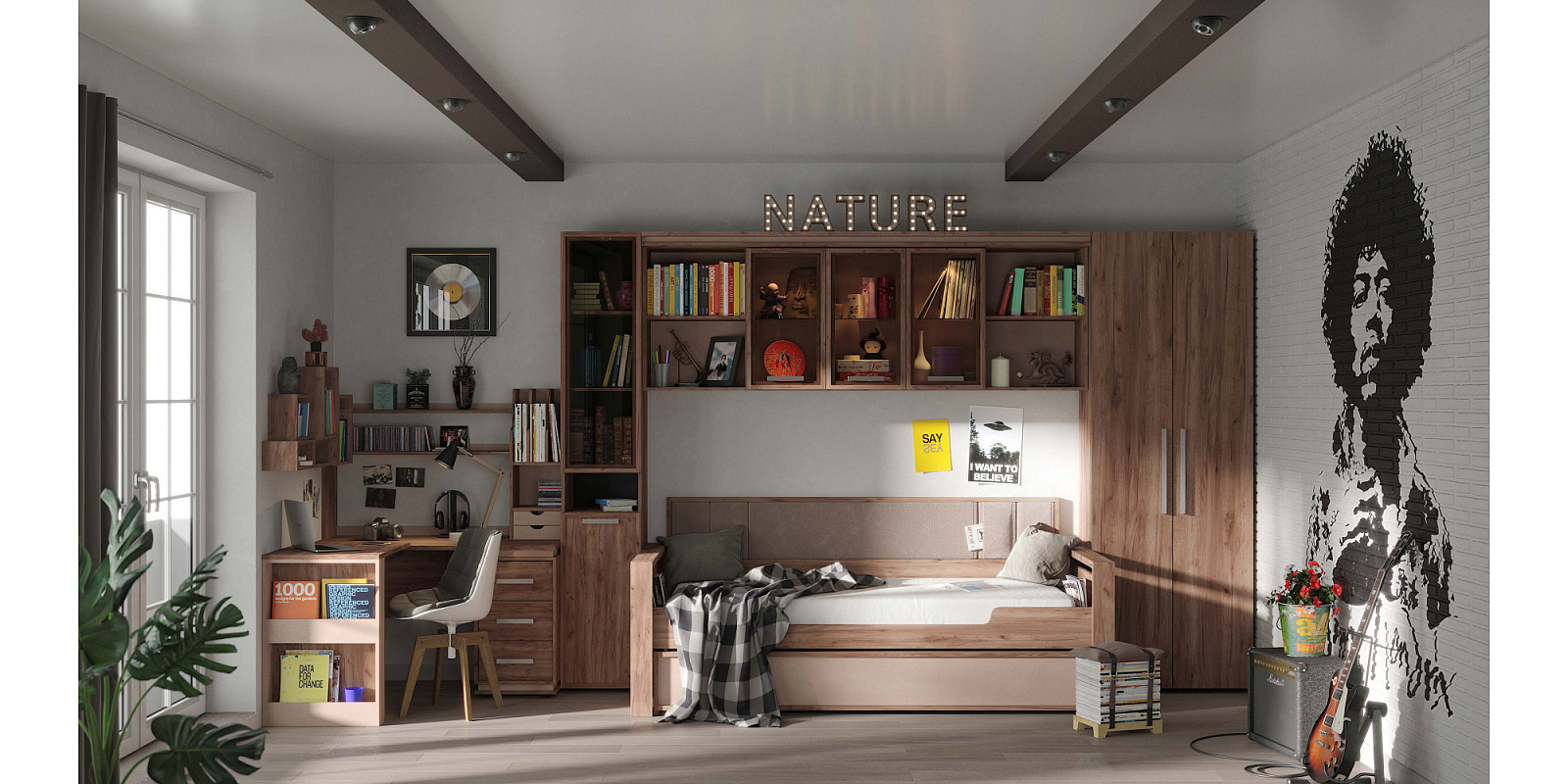 Шкаф для белья поможет подростку рассортировать и держать в порядке свои вещи. Узкий и высокий шкаф-пенал с четырьмя полками, регулируемыми по высоте. Глухой фасад в декоре Ясень Анкор светлый с ручкой из массива цвета серый металлик. Шкаф собирается как на левую, так и на правую сторону. Для надежности рекомендуем крепить шкаф к стене на подвесы.