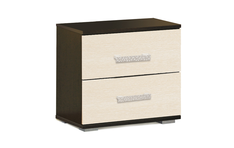 Изделие предназначено для размещения мелких предметов, необходимых человеку в спальне. На тумбе могут быть установлены светильники. Изделие оснащено двумя выдвижными ящиками и эстетичными ручками в виде скобы. Тумбы могут быть выполнены в цвете светлой натуральной древесины или в сочетании тёмного корпуса с нежно-молочным фасадом.