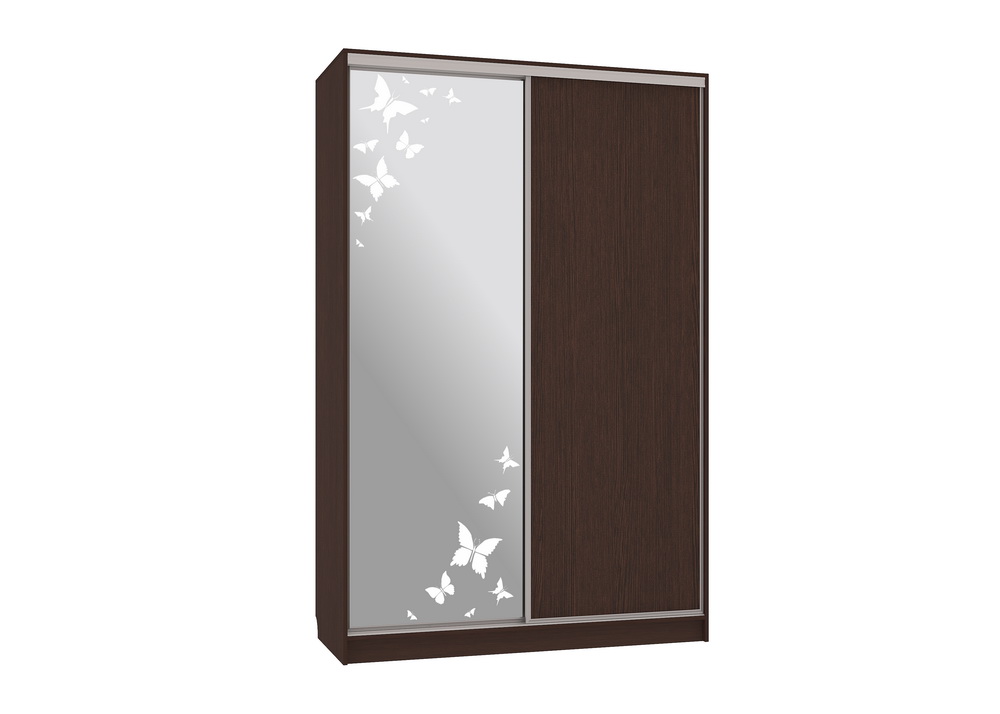 Фасады дверей выполнены из ЛДСП с вставкой из зеркала с матированным рисунком «Бабочки». Рисунок износостойкий, следы на нем не остаются. Зеркало безопасно, выполнено по технологии триплекс.