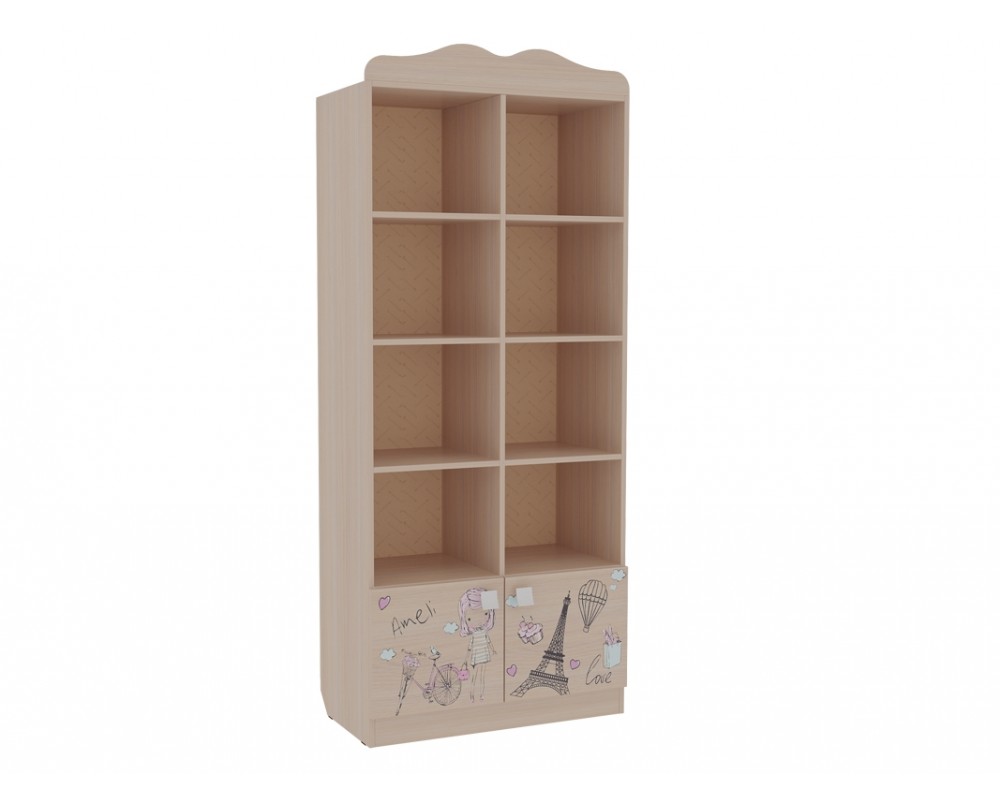 Романтичный стеллаж «Амели» – обрадует каждую девочку. Стеллаж с открытыми и закрытыми полками идеально подойдет для книг, игрушек и мелочей. Элегантный принтерный рисунок на фасадах выдержан в общем стилистическом решении. Рисунок устойчив к истиранию и ультрафиолету. Детская «Амели»- все, что нужно истинной леди!