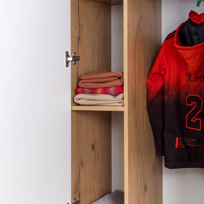 Шкаф из коллекции «Лойс» - практичное и функциональное решение для организации хранения в детской. Наполнение шкафа продумано для мелочей. Выдвижная штанга подойдет для размещения одежды на плечиках, комплект полок - для одежды в сложенном виде. В ящиках хватит места для гранения белья и других личных вещей ребенка. Кроме того, Вы имеете возможность выбрать цвет фасада шкафа: две белые дверцы, две в цвете "графит" или их комбинацию.