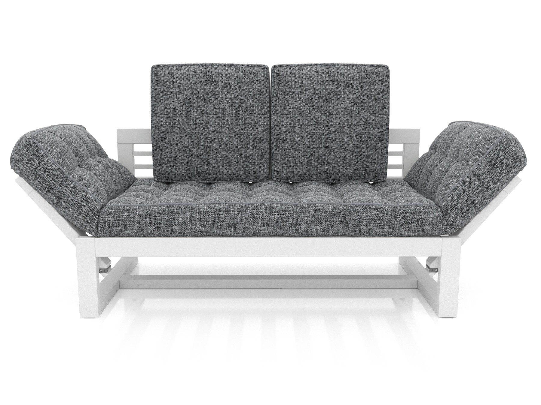 Балтик – удобная и достаточно компактная кушетка, которая может органично вписаться в любой интерьер, как в квартире, так и в загородном доме. Каркас изделия выполнен из массива сосны – натурального и экологически чистого материала, который по вашему желанию может быть исполнен в нескольких цветовых вариантах: натуральная сосна, орех, белая эмаль, дуб беленый, венге. Надежная и простая конструкция за считанные секунды может превратить удобную кушетку в запасное место для сна, что может пригодиться задержавшимся гостям. Трансформация осуществляется за счет изменения положения подлокотников. У данной модели есть 3 вариации каждого подлокотника: вертикально вверх, под углом и в горизонтальном положении. Мягкая часть изделия может быть выполнена в различных цветовых решениях, а также из разного типа ткани: рогожки, вельвета или экокожи. Чехол матраса несъемный, сам матрас крепится к реечному основанию каркаса специальными лентами-застежками, благодаря чему сидит как влитой. На  кушетке спокойно могут сидеть 2 взрослых человека, вес каждого может быть до 140кг. Сидеть взрослому человеку на разложенном подлокотнике не рекомендуется – это может привести к поломке изделия. Подлокотники служат опорой для ног или верхней части туловища одного человека, когда он лежит или находится в полулежачем положении.