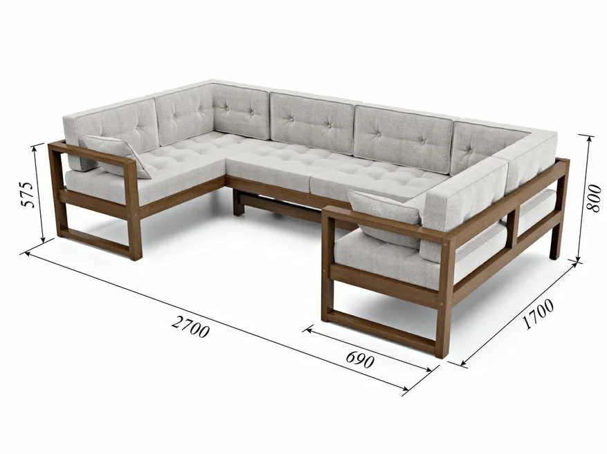 Комплект поставки: Каркас, матрасы, шесть приспинных подушек, две декоративные подушки