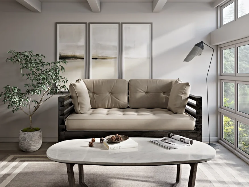 Комплект поставки: Каркас, матрас, две приспинные и две декоративные подушки