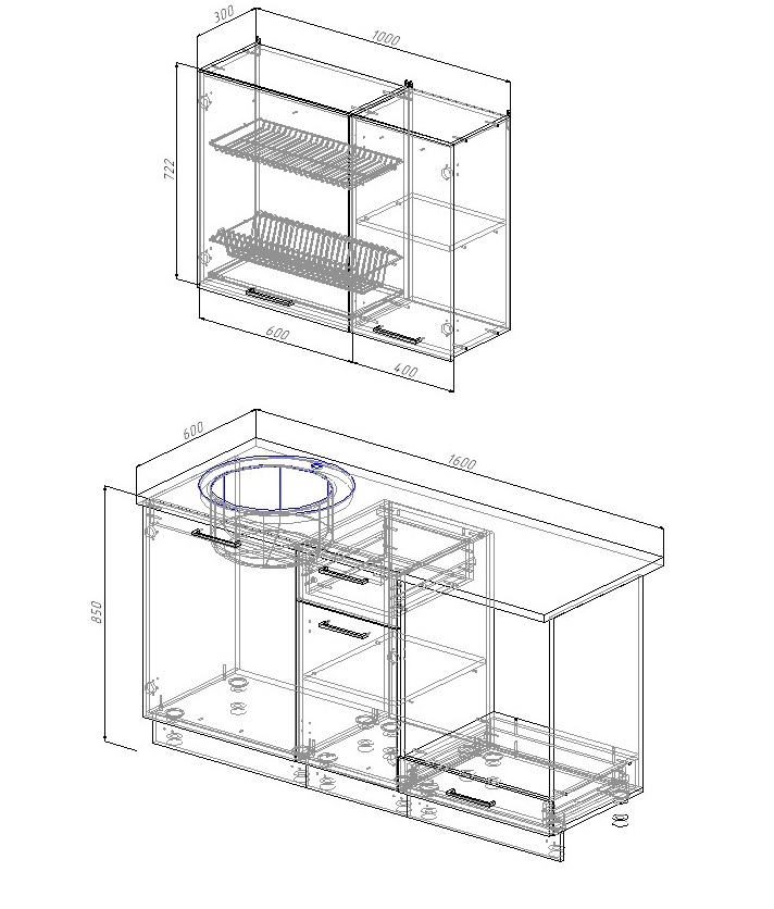 - Корпус верхний Сушка 600х300х710 МВС7 60 Антрацит с посудосушителем (МВС7 60А) 1шт