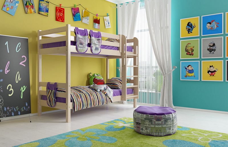 Двухъярусная кровать Соня Вариант 9 с прямой лестницей. Кровать может монтироваться на правую или левую сторону, имеет компактный вид в разборе.