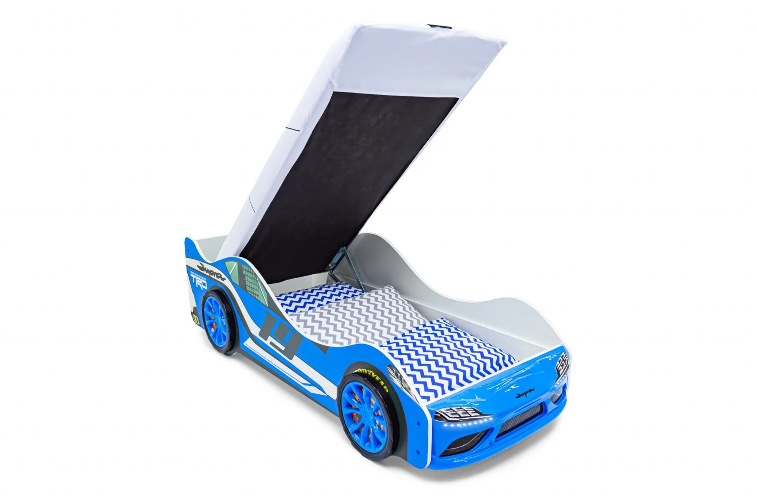 Магазин мебели «100Диванов» предлагает купить Кровать-машина "Супра" синяя с подъемным механизмом и подсветкой фар в Лангепасе по выгодным ценам от производителя с доставкой.