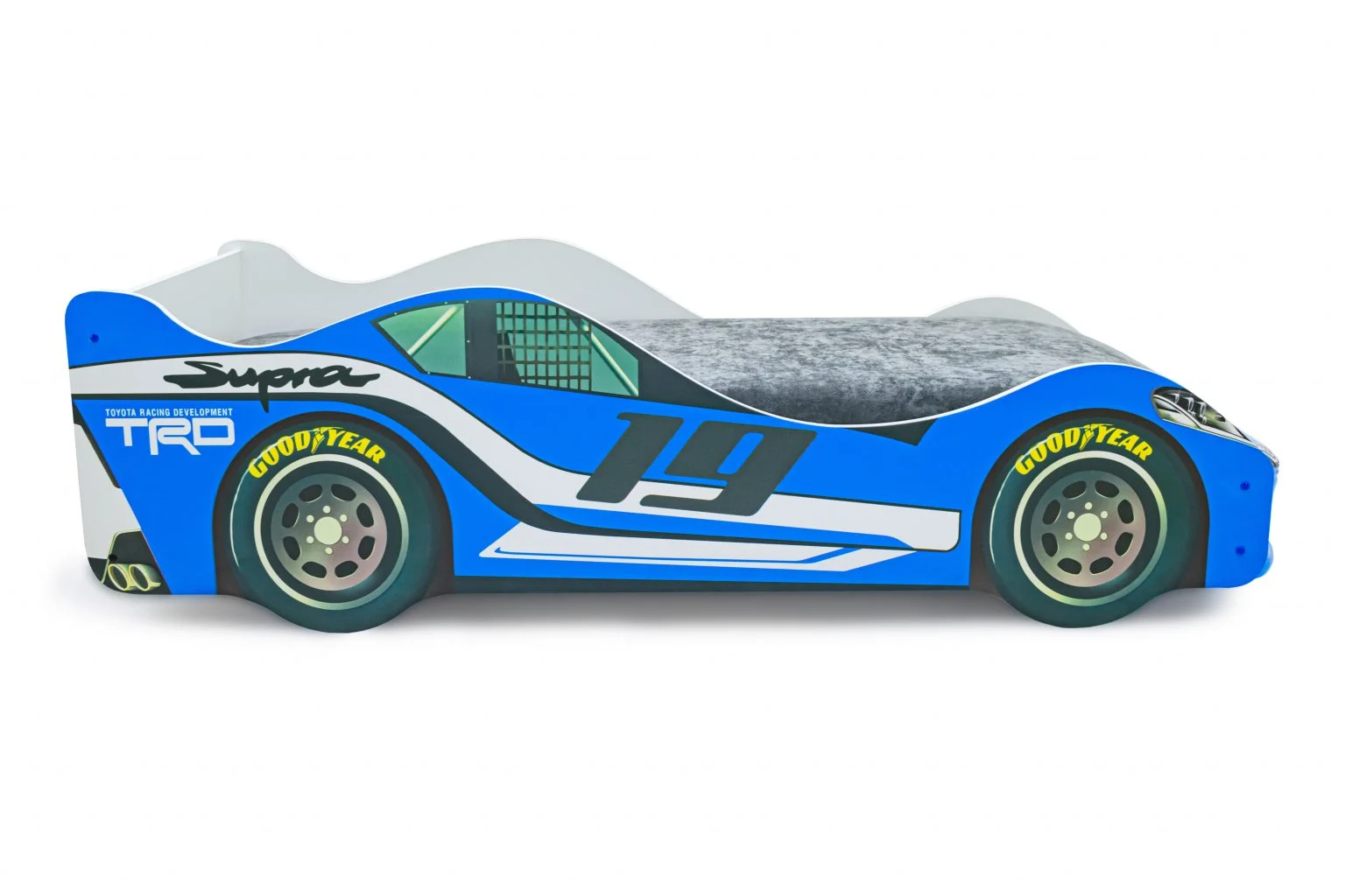 Детская кровать-машина “Супра” синяя с подсветкой фар станет любимым местом для сна и игр мальчика или девочки от 2 до 10-12 лет.