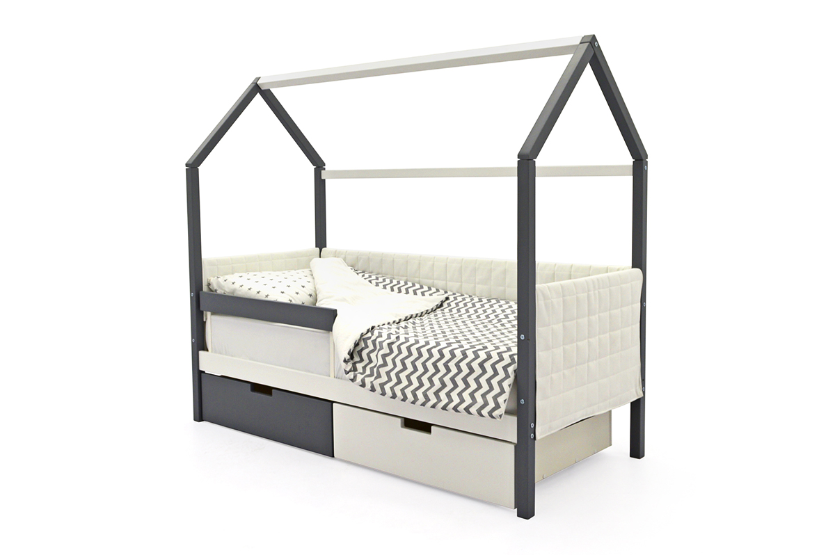 Детская мягкая кровать-домик Бельмарко “Svogen графит-белый” станет любимым местом для сна и игр мальчика или девочки от 2 до 10-12 лет.