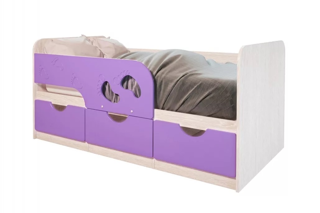 Детская кровать Минима-Лего дуб атланта/лиловый сад