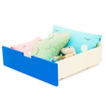 Для удобства хранения игрушек или постельных принадлежностей, вы можете приобрести еще вместительные ящики, которые устанавливаются под основание кровати. Многообразие цветов фасадов ящика позволяет скомплектовать разные варианты.