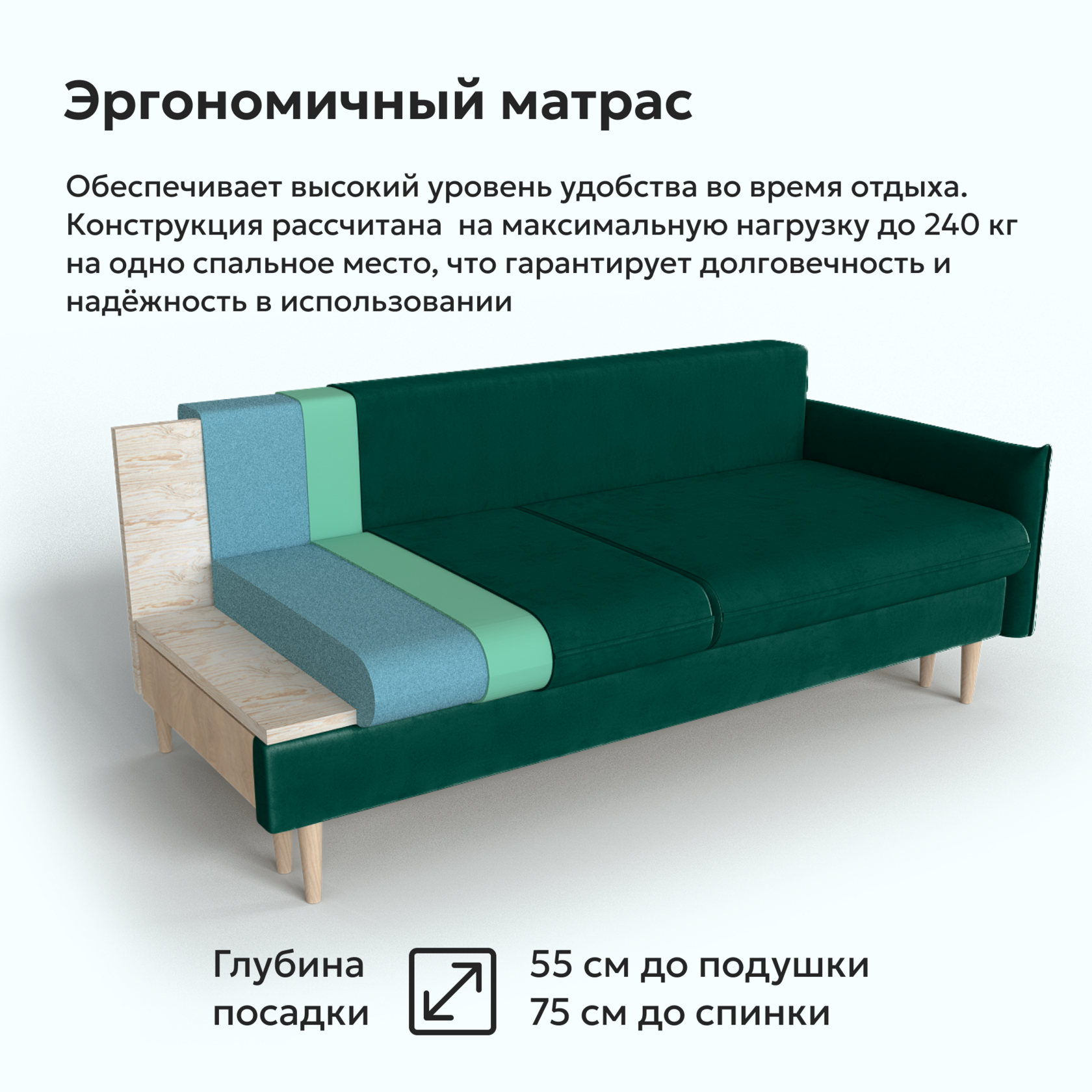 Диван-кровать Фьорд — один из классических представителей скандинавского стиля. Он минималистичен и привлекателен. Аккуратные строчки, ножки из натурального массива березы и нежная велюровая обивка — продумана каждая деталь.