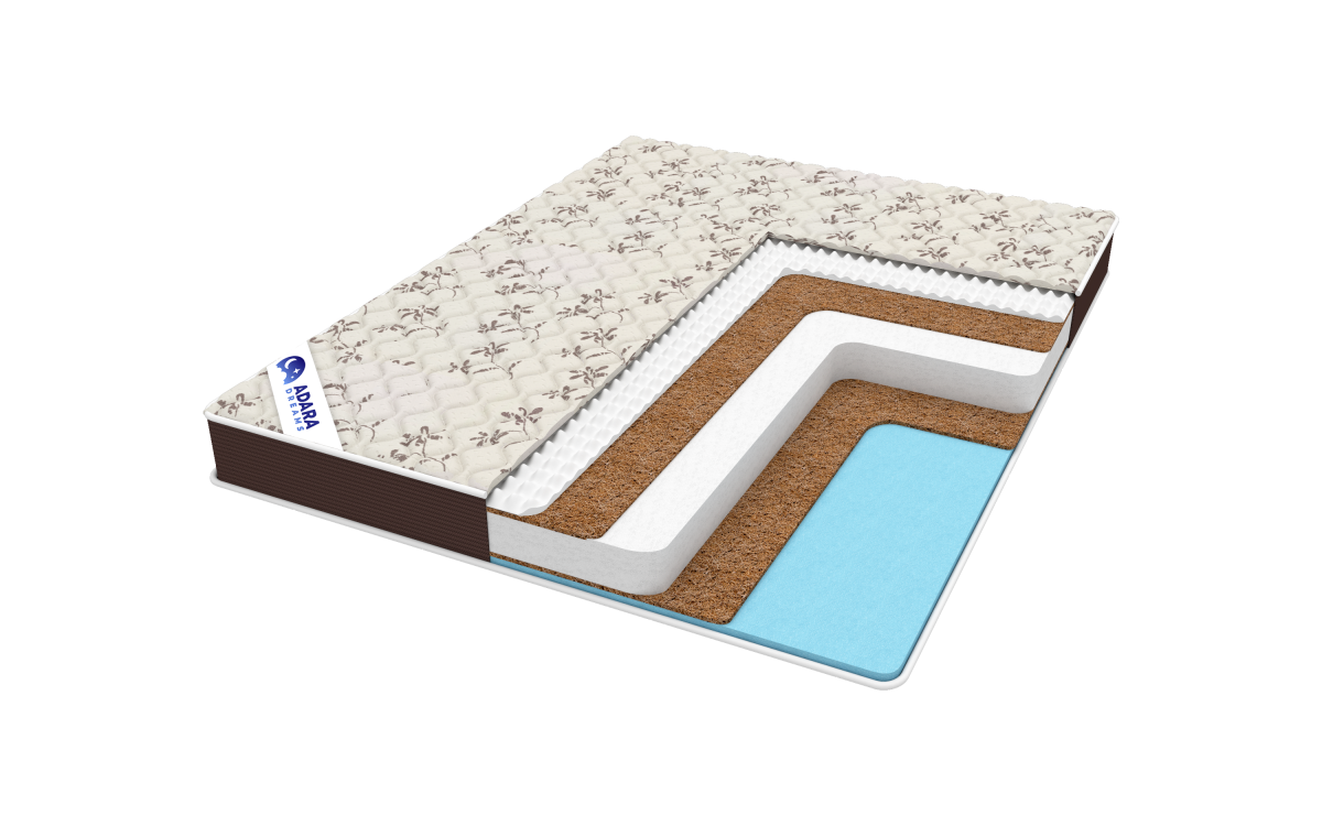 Два слоя натуральной койры придают матрасу среднюю жесткость: она подходит и для взрослых, и для подростков. Благодаря отсутствию пружин матрас со временем не изменяет форму и не начинает издавать посторонних звуков.