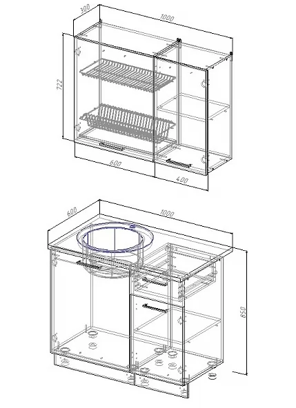 Высота верхних модулей 720 мм