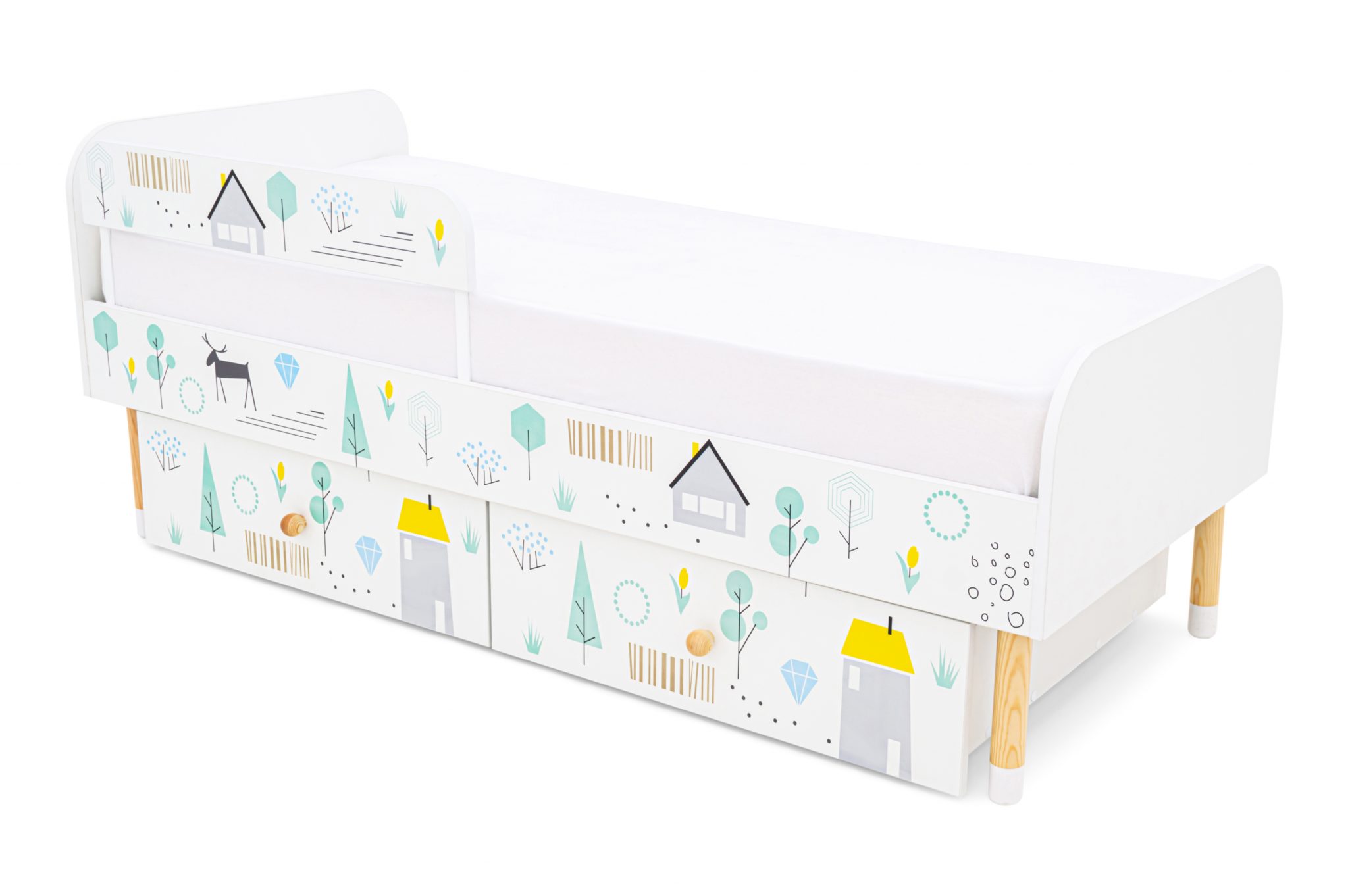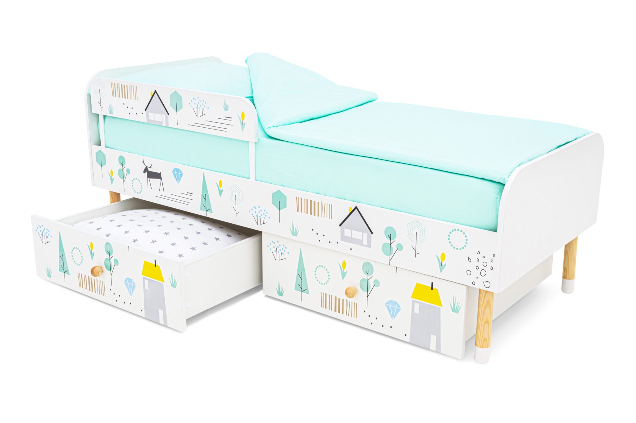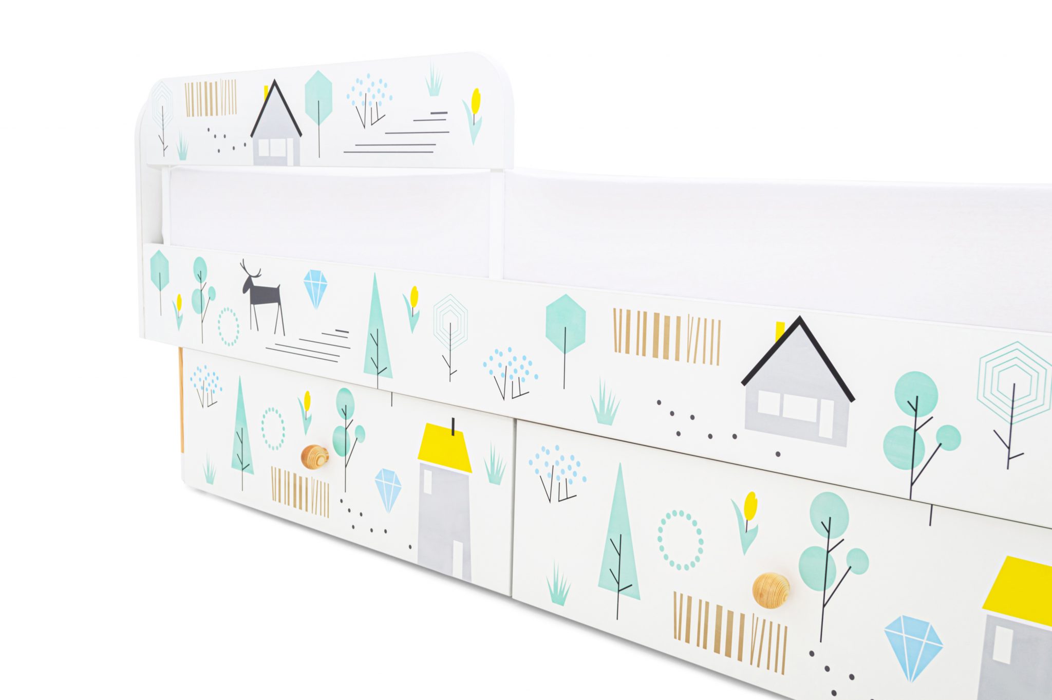 Кровать выполнена в лаконичном скандинавском стиле, который очень популярен сейчас в интерьере и соответствует духу серии «Stumpa» в целом. Милые рисунки оживят кроватку и подойдут к любой цветовой гамме в детской комнате.