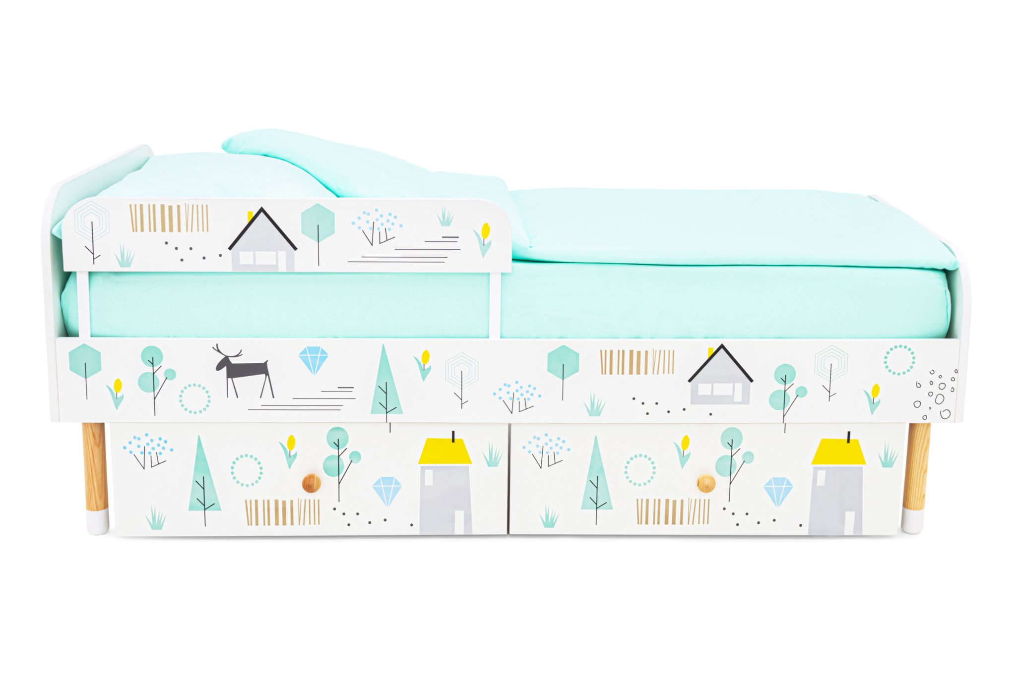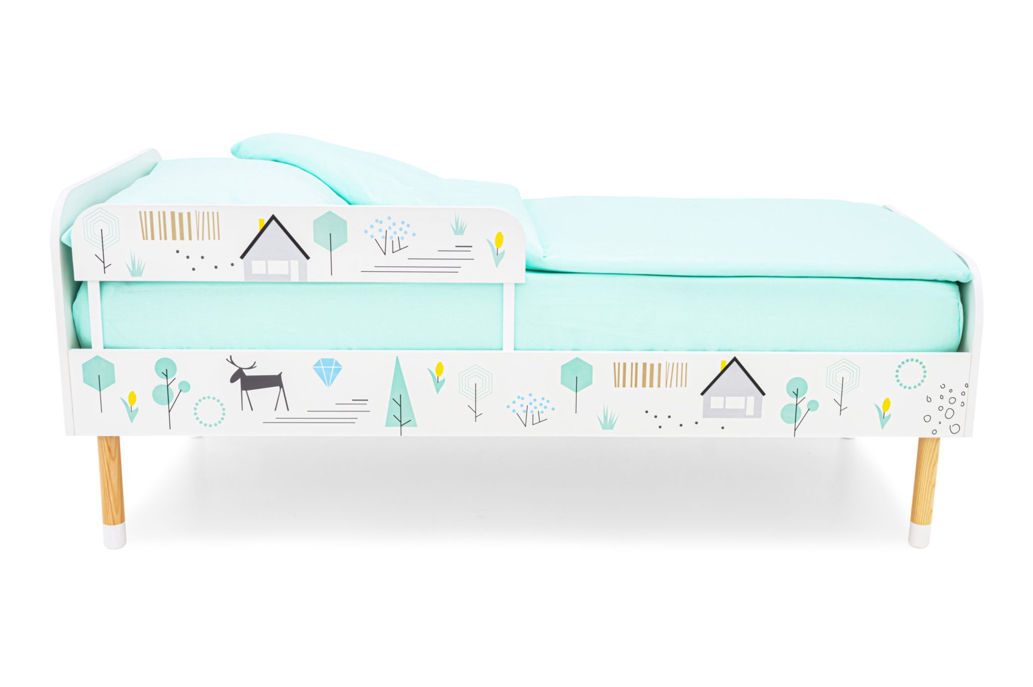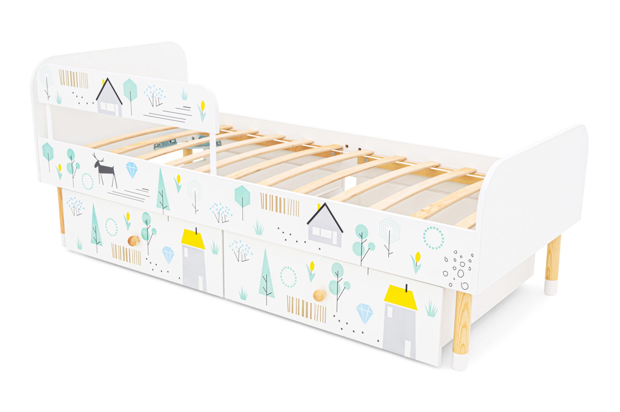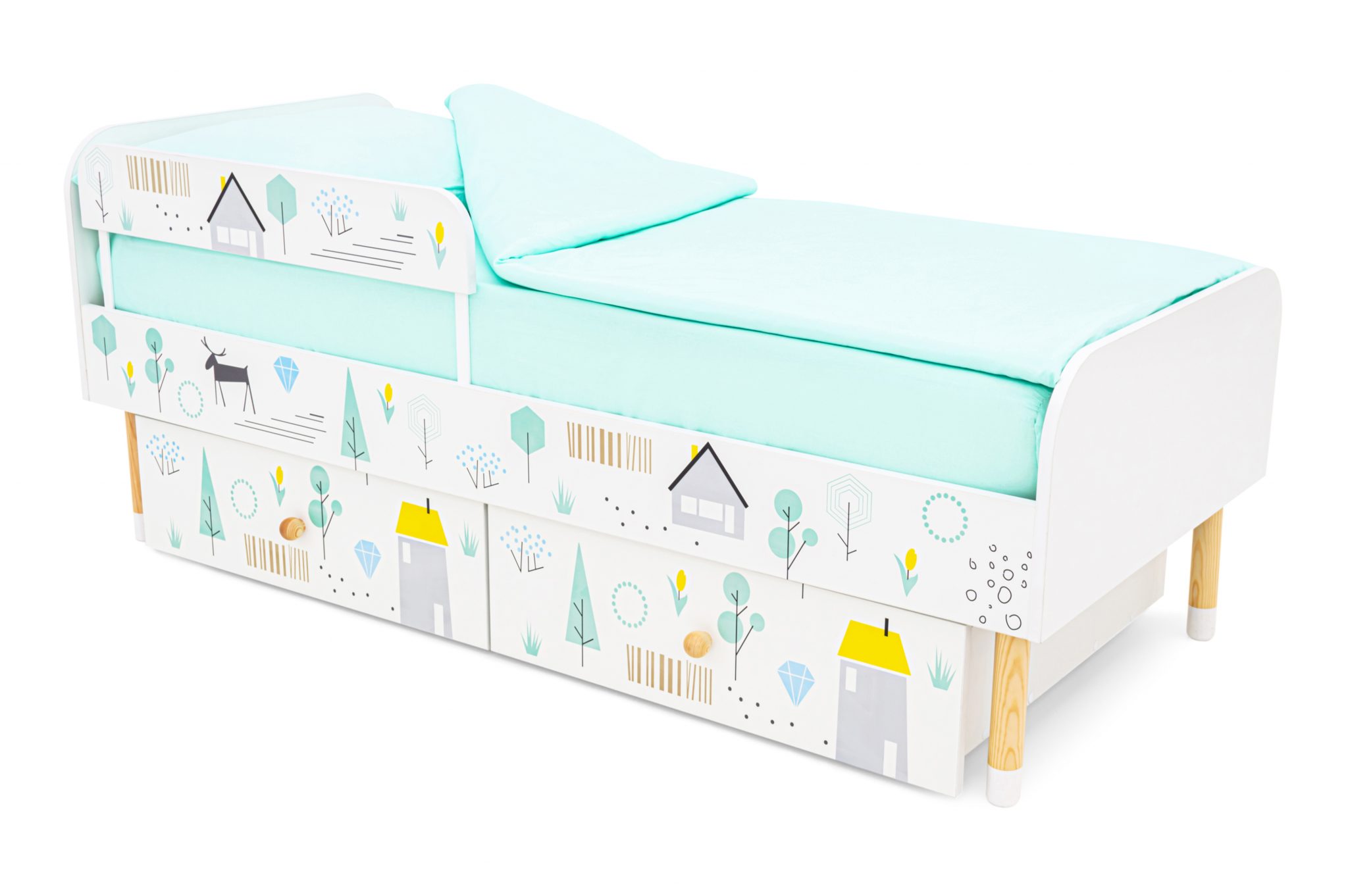 Кровать выполнена в лаконичном скандинавском стиле, который очень популярен сейчас в интерьере и соответствует духу серии «Stumpa» в целом. Милые рисунки оживят кроватку и подойдут к любой цветовой гамме в детской комнате.