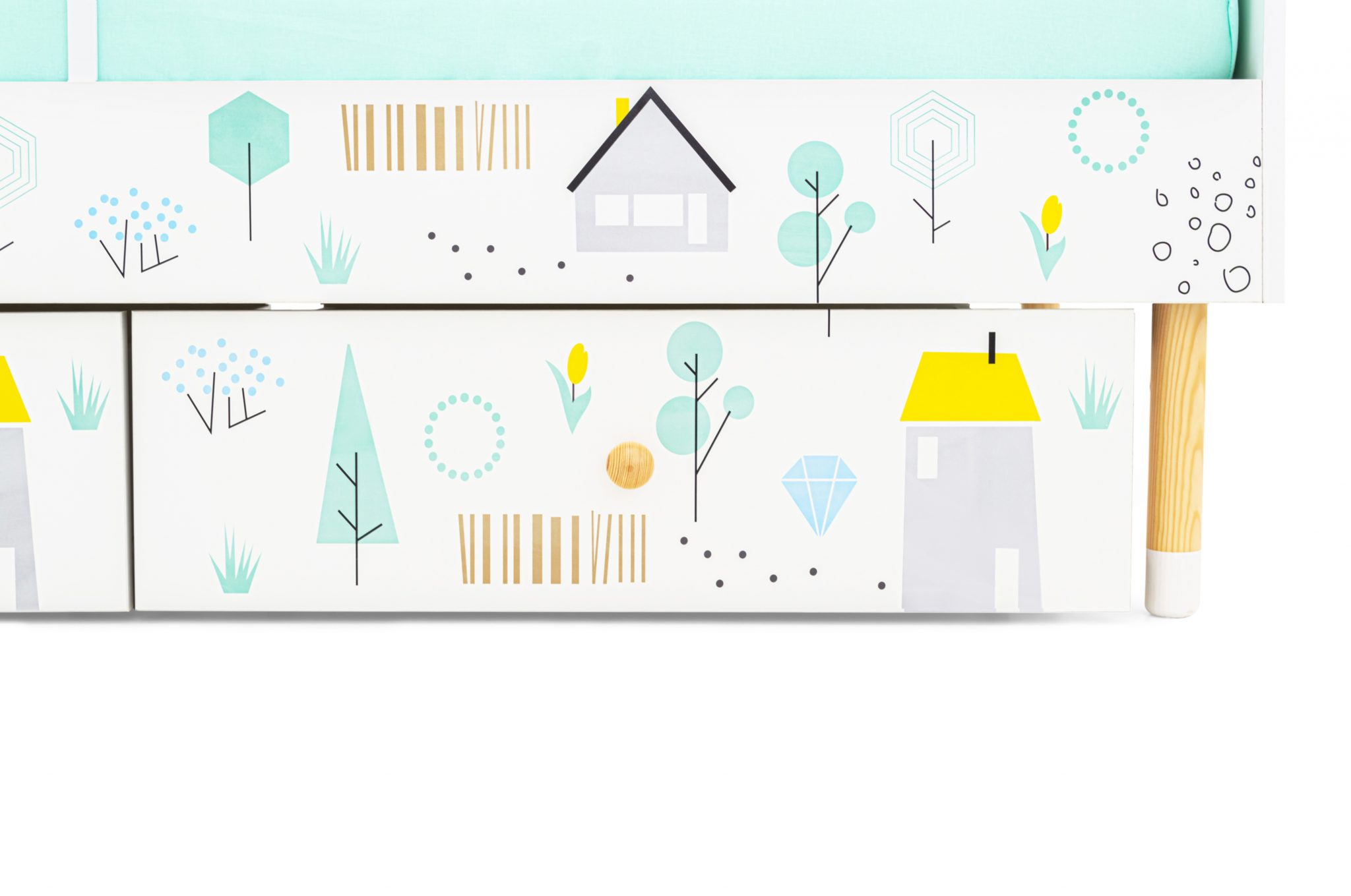 Для удобства хранения игрушек или постельных принадлежностей, вы можете приобрести еще вместительные ящики, которые устанавливаются под основание кровати. Многообразие фотопечати фасадов ящика позволяет скомплектовать разные варианты.