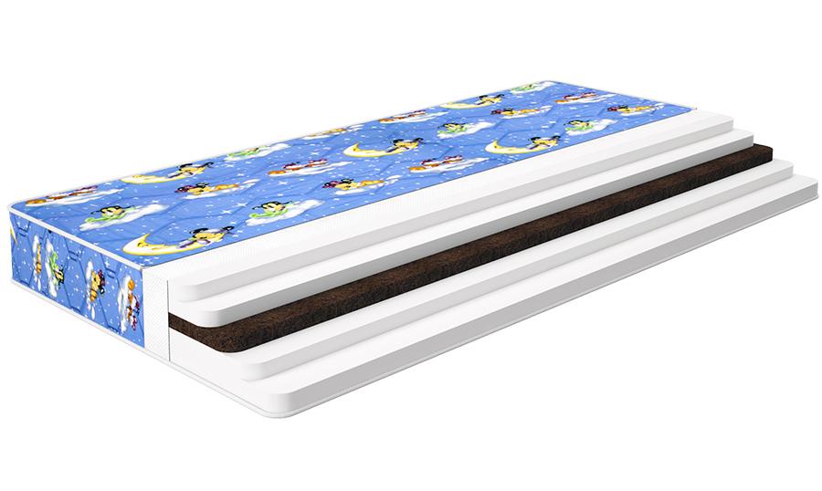 Беспружинный матрас, изготовленный на основе кокосового волокна, обладающего природными антиаллергенными и антибактериальными свойствами. Два слоя воздухопроницаемого струттофайбера обеспечивают  отличную циркуляцию воздуха внутри матраса. Матрас подойдет для детей любого возраста.