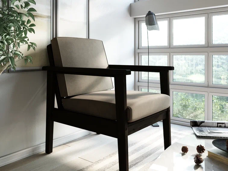 Комплект поставки: Каркас массив сосны, одна подушка сиденья, одна приспинная подушка