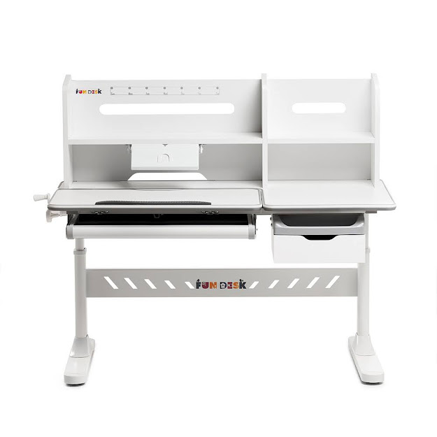 Благодаря своему современному и сдержанному дизайну, возможности регулировки высоты столешницы, качественным и долговечным материалам стол-трансформер FunDesk Fiore II сможет прослужить вашему ребенку надежным помощником на весь период школьного обучения.