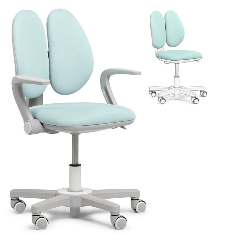 Кресло Fundesk Mente имеет ортопедическую спинку, которая состоит из двух половинок, что позволяет поддерживать спинку сидящего ребенка, в любом положении поворота корпуса.