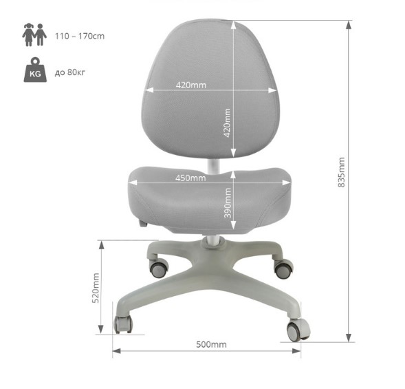 • ABS ролик не позволяет произвольно скользить по полу когда ребенок сидит на кресле, однако, кресло легко можно передвигать когда на нем никого нет.