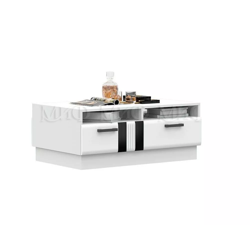 Многофункциональный столик для гостиной "Магнолия" можно использовать как тумбу для хранения. Стол имеет два выдвижных ящика и открытые ниши.