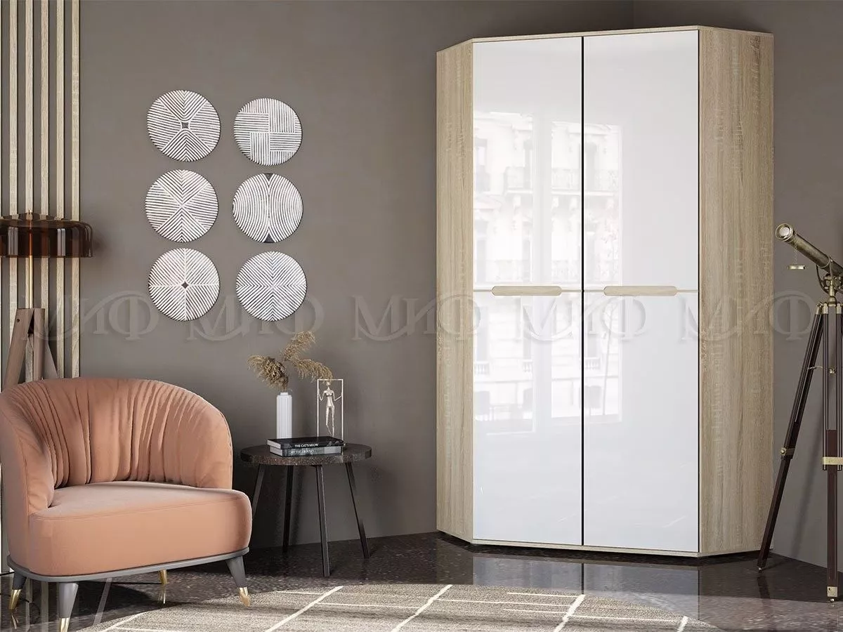 Шкаф угловой универсальный Ким Белый глянец/Сонома