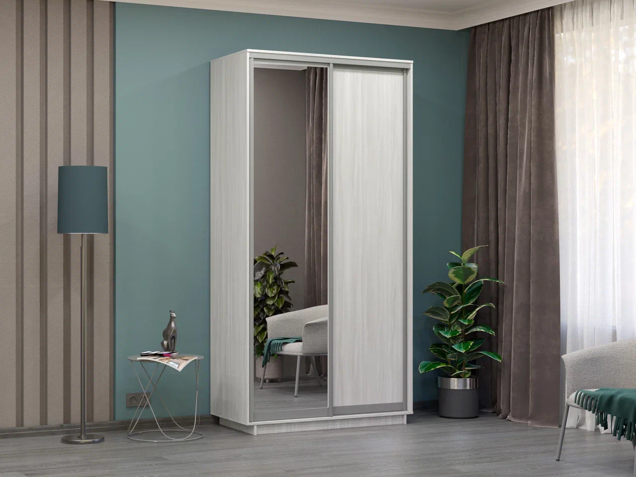 Шкаф-купе Хит (фасад дсп/зеркало) Белый