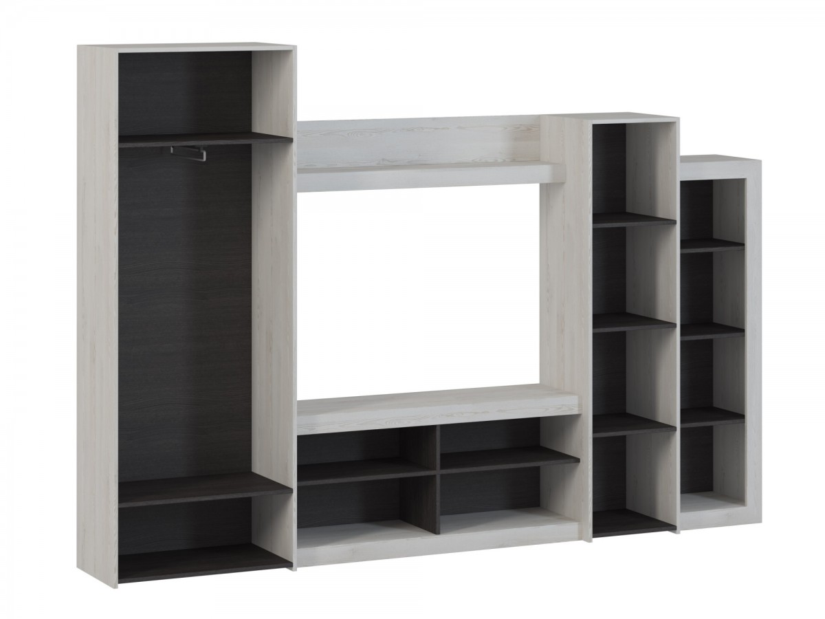 Вместительная стенка для небольших помещений. В гостиной «Oskar -4» предусмотрено: пенал, со стеклянной и глухой дверью, пристройка с открытыми полками, для хранения мелочей, бумаг, книг. Место для телевизора и аппаратуры. Полка для сувениров и фотографий. Плательный шкаф для хранения вещей на выдвижной штанге и на полках. За счет уменьшения высоты у пенала и пристройки, стенка имеет более облегченный вид.