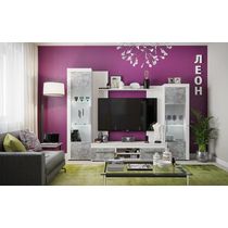 Гостиная также приобрела свои уникальные современные черты:декорирование вставками фасадов цвета Перламутр и элементами из матового стекла;надежные комплектующие европейских производителей гарантия качества и долгой службы;комплектация гостиной с вместительной тумбой для телевизоров с диагональною до 75 дюймов;отсутствие лицевой фурнитуры. Все фасады и ящики открываются при помощи нажатия (система Push-to-open).