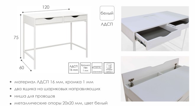 Стол ЧИП находка для тех, кто любит минимализм в интерьере. Универсальные ящики на шариковых направляющих вместят в себя канцелярию, ноутбук, книги и многое другое.