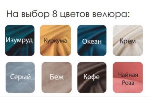 Варианты расцветок: Изумруд, Куркума, Океан, Крем, Серый, Беж, Кофе, Чайная роза.