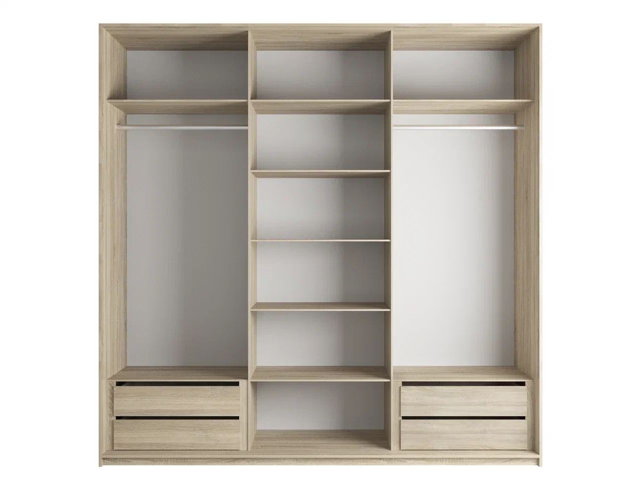 По умолчанию: шкаф комплектуется штангами для одежды.