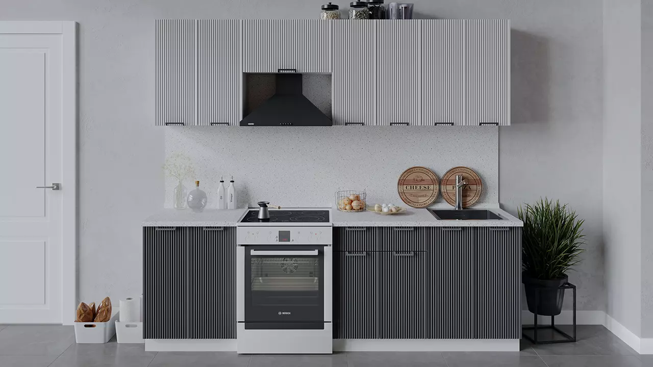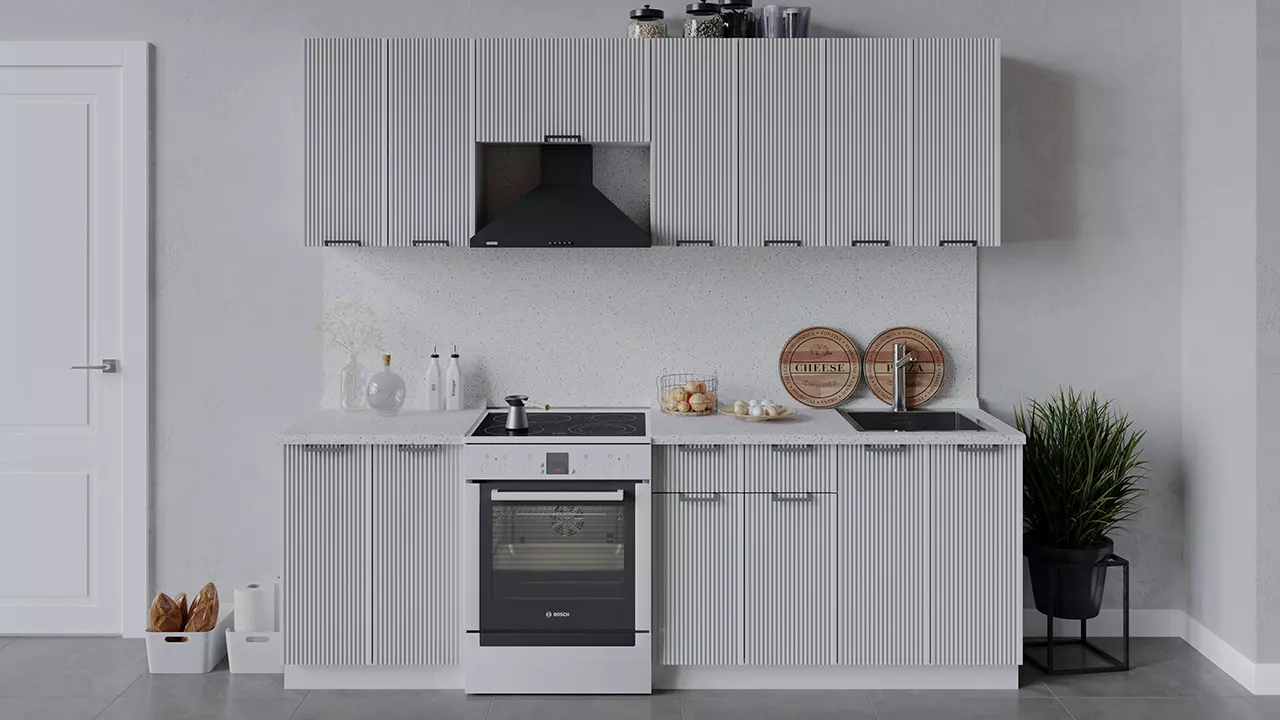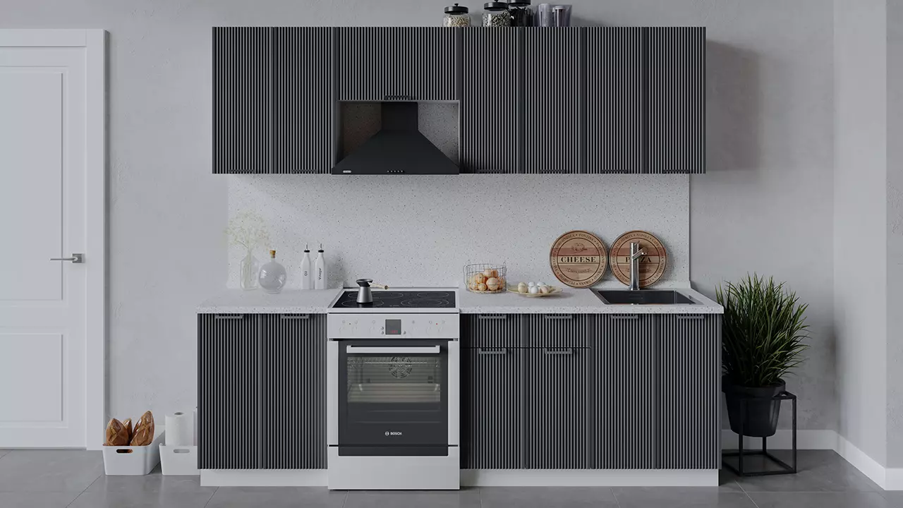 Габаритный размер готового набора модулей с учетом газовой плиты на 60 см: 240 см.