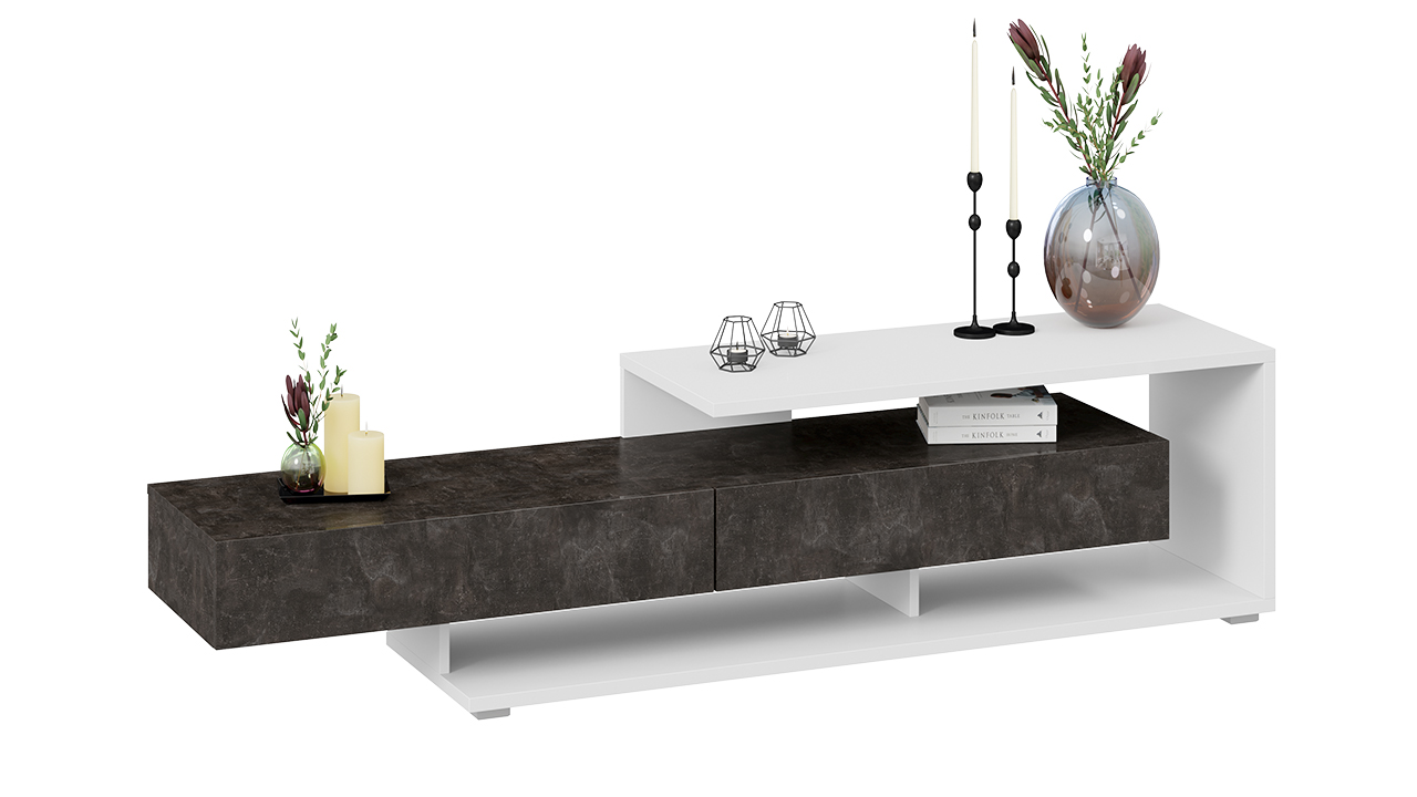 Помимо привлекательного внешнего вида, который способен вписаться в любой интерьер, тумба под ТВ «Монтана» дополнена вместительными выдвижными ящиками на шариковых направляющих, открывание с помощью захвата рукой снизу. Кроме закрытых мест для хранения, тумба имеет вместительную открытую нишу, на которой можно разместить всю необходимую медийную технику, а также предметы декора.