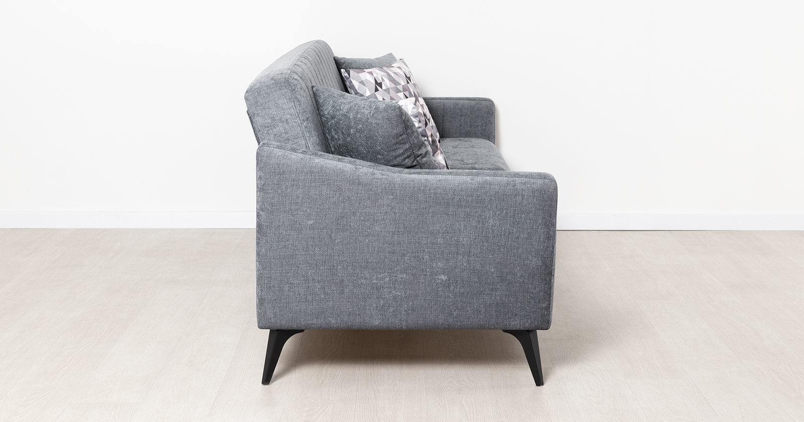 Посадочная и спальная зоны при раскладывании равны, что обеспечивает хороший сон. Механизм трансформации - книжка. Раскладной диван представляет больше возможностей для обустройства интерьера. Черные металлические ножки дивана высотой 160 мм позволят использовать его в интерьере лофт.