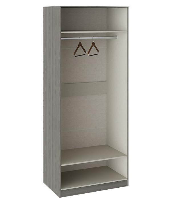 У двухдверного шкафа для одежды из коллекции "Либерти" один из фасадов зеркальный, а второй - комбинированный: верхняя часть фасада ЛДСП «Хадсон», нижняя часть фасада выполнена из МДФ в сером глянцевом покрытии эмалью «Стоун». Зеркальный и комбинированный фасады можно менять местами. Шкаф комплектуется полками ЛДСП и стационарной штангой.