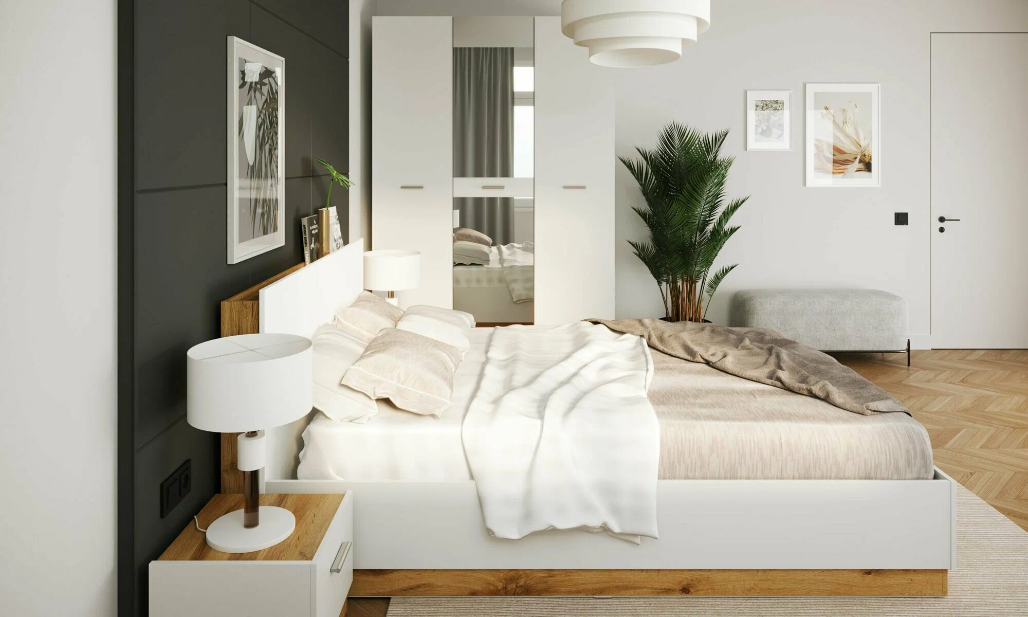 Прикроватная тумба Fresco — один из элементов стильного спального гарнитура. Компактная, удобная и нарядная модель займет совсем немного места, но сможет сделать спальню намного комфортнее. Во вместительный выдвижной ящик можно сложить косметические и уходовые средства, салфетки, гаджеты и аксессуары — всё то, что может потребоваться у кровати. Крышка тумбы удобна для установки светильника, будильника, стакана воды. Перед сном можно положить на нее книгу или смартфон и не бояться, что предметы упадут.