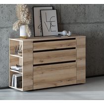 Мебель имеет интегрированные ручки - это "ручки без ручки". Выполнены они путем проведения сложной уникальной тех-операции в виде скоса внутренней части горизонтальной грани фасада размером 11х11 мм. При этом по верхней грани торца фасада остается ровная площадка 5 мм. Трапецивидный спил окутан бесшовной кромкой по скошенной и прямой грани. Такая технология является уникальной, позволяет защищать грани фасада от разбухания в агрессивной влажной среде.