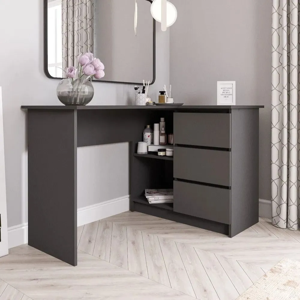 Стол универсальный Мори МС-16 возможно собрать как на правую, так и на левую сторону. Для хранения предусмотрены три выдвижных ящика. Роль ручек выполняет сам фасад, открывание ящиков происходит за счет пространства между ним и планками.