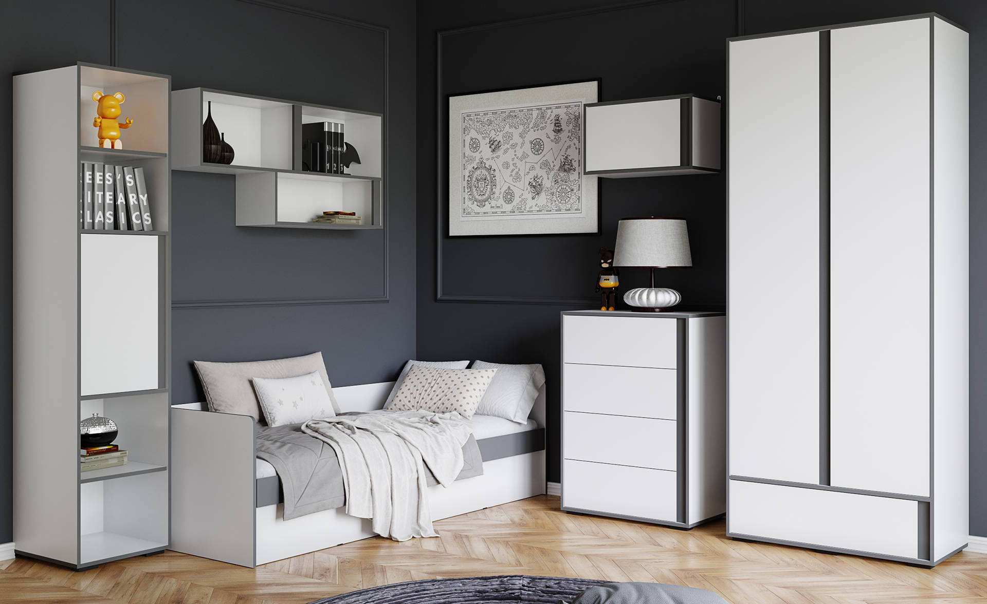- Коллекция со скошенными фасадами без лицевой фурнитуры