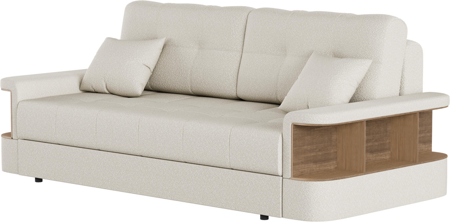 Прочный металлокаркас, упругое сиденье с независимым пружинным блоком, специальная простежка чехла и проверенный механизм "еврокнижка" гарантируют качественную службу дивана на долгие годы. Изюминкой модели являются функциональные подлокотники с нишами для хранения приятных мелочей.