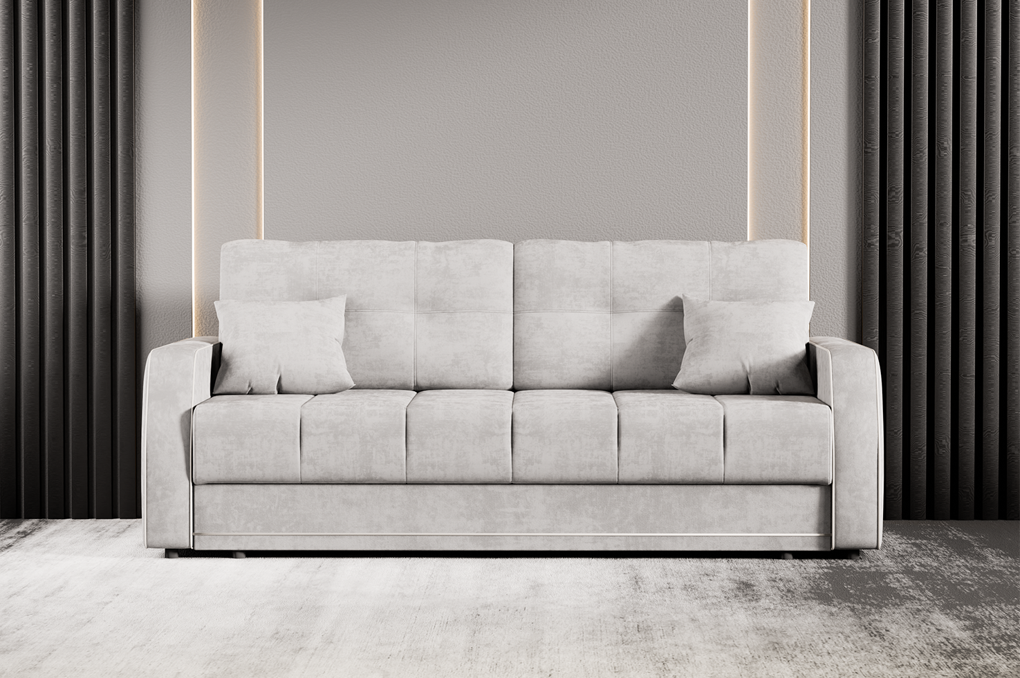 Роскошный вид этому мебельному хиту придает мягкая обивка из велюра (съемные чехлы обеспечивают легкий уход!), а прочный металлокаркас, упругое сиденье с независимым пружинным блоком, специальная простежка чехла и проверенный механизм "еврокнижка" гарантируют качественную службу и максимальную практичность дивана.