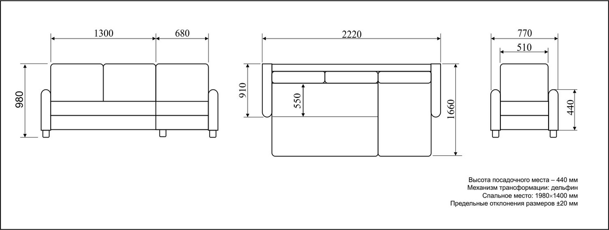 | Ширина, мм | 2220 |