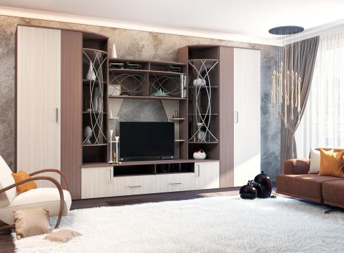 В гостиной "Атланта" строгость линий разбавляется симметричным витражным рисунком, который создает настроение и придает всей композиции элегантную индивидуальность.