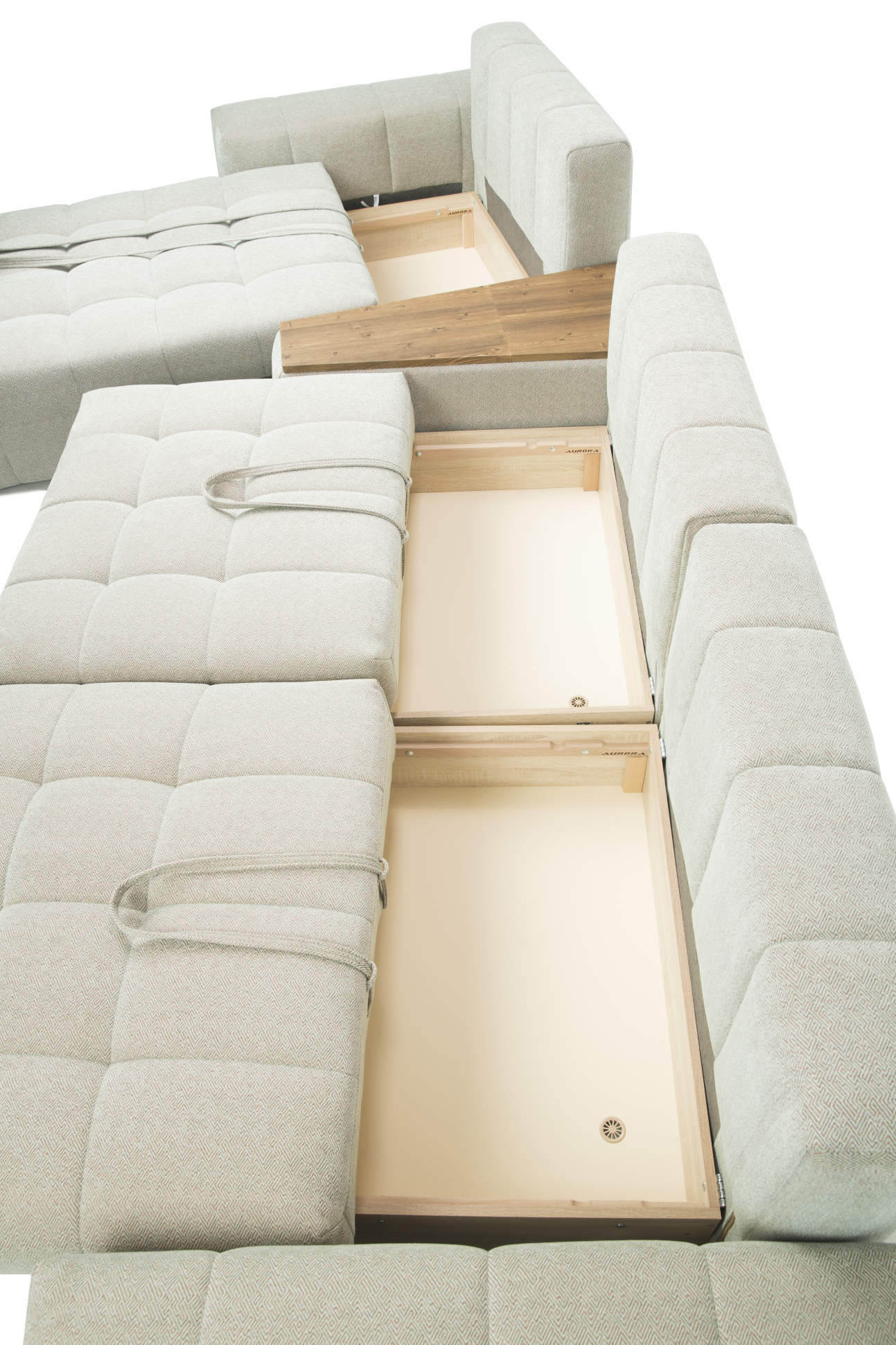 В основании дивана металлический каркас HEAVY METAL, с дополнительной гарантией 67 месяцев. Вы легко сможете разложить диван с помощью механизма «еврокнижка» со стальными направляющими AURORA STEEL.