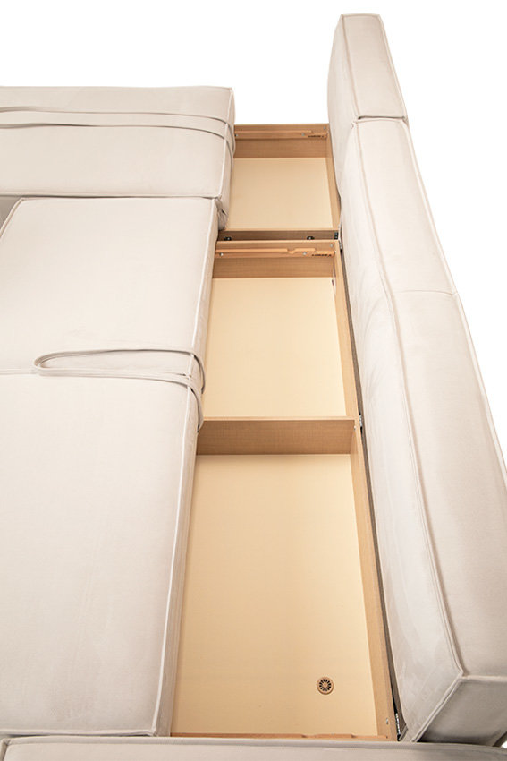 В конструкции прочный металлический каркас HEAVY METAL с повышенной гарантией 67 месяцев. Дополнительное положение RELAX позволяет телу максимально расслабиться, а наклон увеличивает глубину сиденья на 30%. Механизм «еврокнижка» превращает диван в кровать без особых усилий. Ортопедическое наполнение AURORA FORM + идеально подходит для ежедневного сна. Ниши для хранения расположены под посадочным местом.