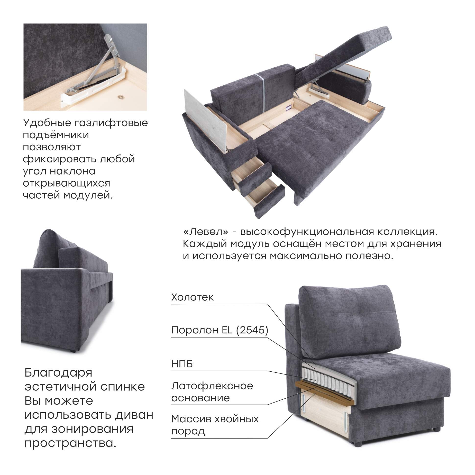 Модульная коллекция «Левел» - это дизайн актуальный во все времена и непревзойденный комфорт. Его высокая функциональность удовлетворит самых требовательных покупателей.